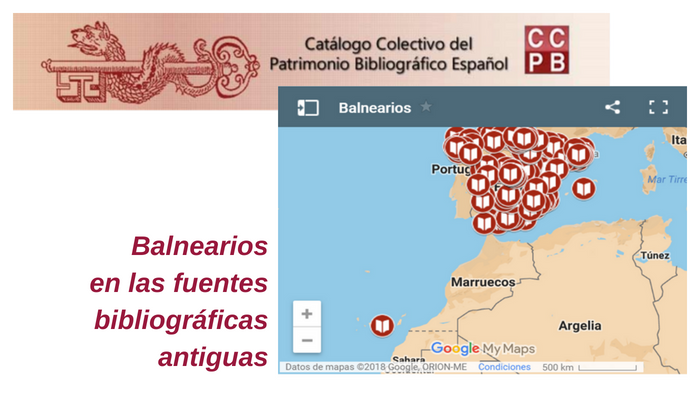 Como proyecto piloto de georreferenciación de la información, el Catálogo Colectivo de Patrimonio Bibliográfico, ha construido un mapa de balnearios españoles en las fuentes bibliográficas del Catálogo. Se eligieron los balnearios españoles como materia de partida por tratarse de un tema que se mantiene vigente y activo, sigue despertando un gran interés y presenta un número de referencias relativamente abarcable.